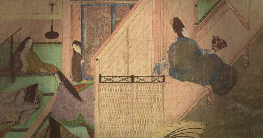 Yet as painters continued to depict Japan’s world, a manner characteristic of yamato-e gradually took shape. Gentle color harmonies, delicate line work, and decorative compositions came to the fore. A well-known device in narrative handscrolls is fukinuki yatai (the “blown-off roof” style), in which the roof is removed to reveal interior scenes. Such approaches helped define yamato-e as a visual language.
