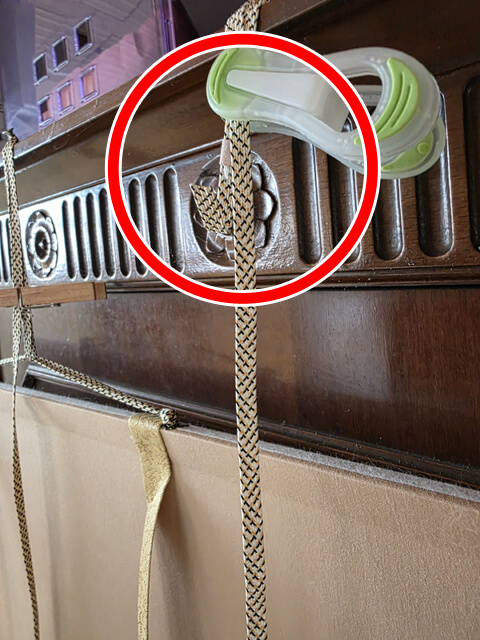 However, a very common and dangerous mistake when displaying a kakejiku is to use this makio to create a loop, hang it on a hook or nail, and adjust the height — as shown in the example photo below. At first glance, this method may seem convenient, but in fact, it is extremely dangerous and can easily damage the scroll.