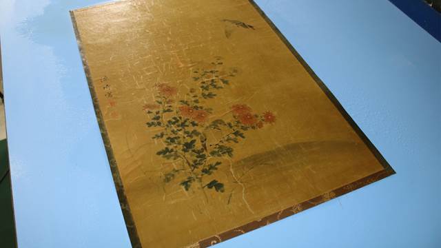 The photo below: This is the painting with a new backing paper after we remove the old backings and omote-uchi.