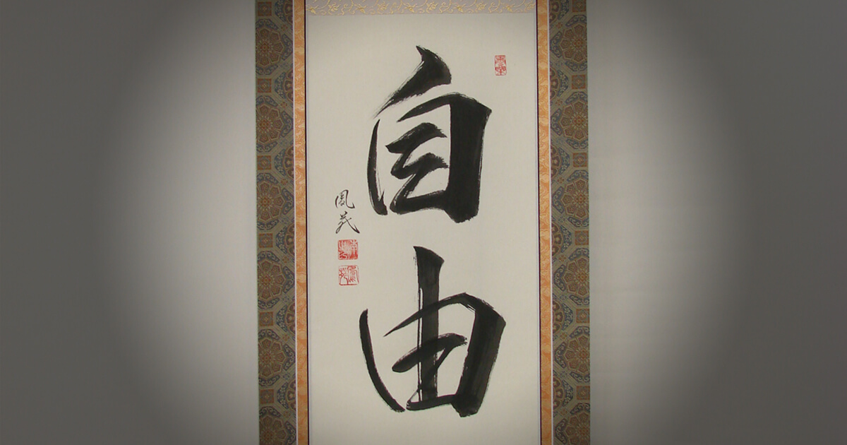 The kakejiku (a hanging scroll; a work of calligraphy or a painting which is mounted and hung in an