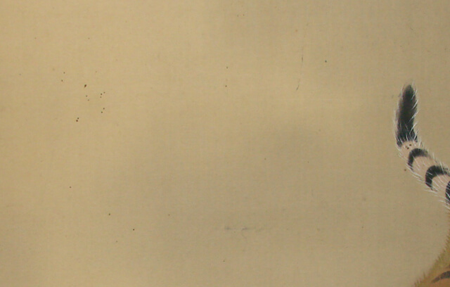 The tiger scroll had several small stains and noticeable traces of insect droppings.