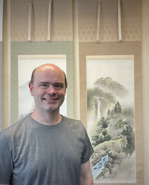 After completing his work in Kobe, he was scheduled to attend a conference in Sendai. During a short break between his appointments, he visited our shop to look for a kakejiku as a souvenir for his girlfriend back home in the U.S.