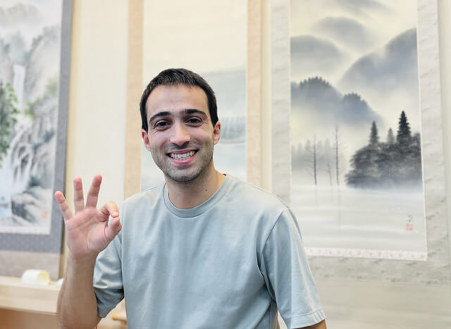 Pedro-san was traveling in Japan and visited our shop to look for kakejiku as gifts for two of his seniors back home.