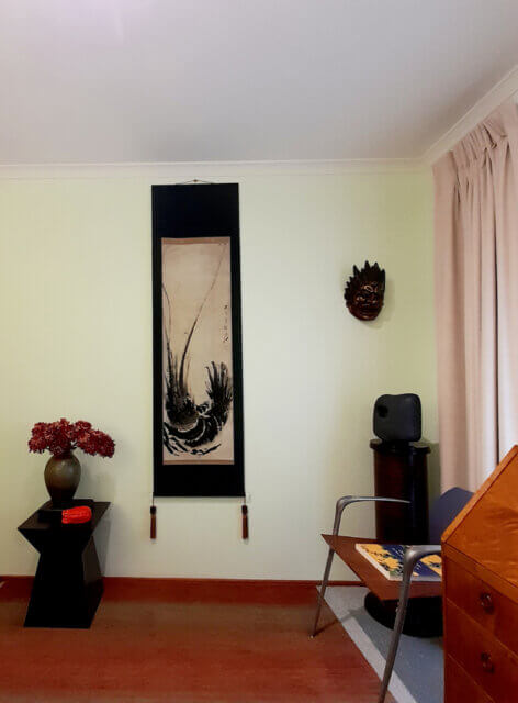 The kakejiku (a hanging scroll; a work of calligraphy or a painting which is mounted and hung in an