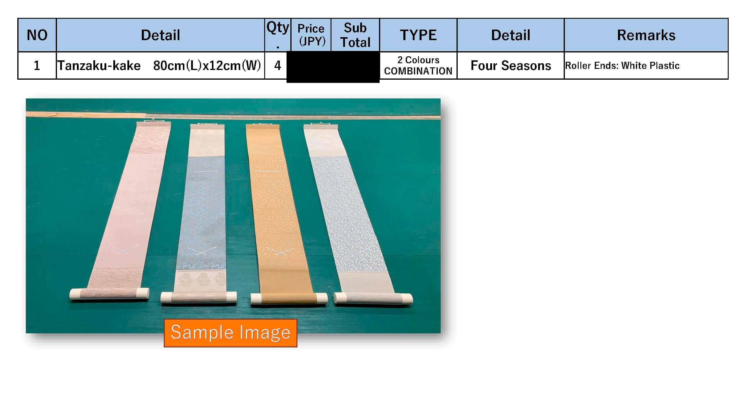 We can propose suitable options after hearing your preferences, such as size, color direction, and seasonal combinations. If you are interested, please feel free to contact us.