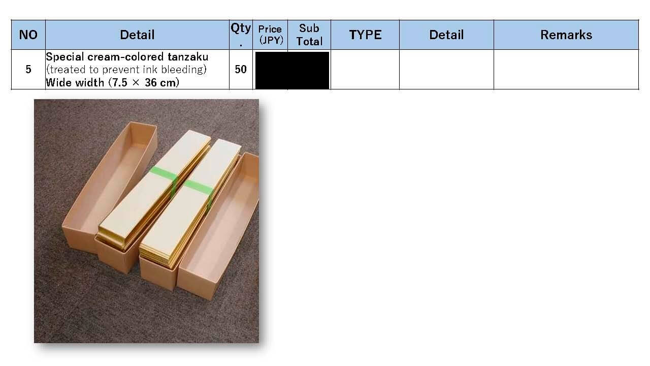 - ・Cream-colored tanzaku sheets with anti-bleed treatment (wide width 7.5 × 36 cm): 50 sheets